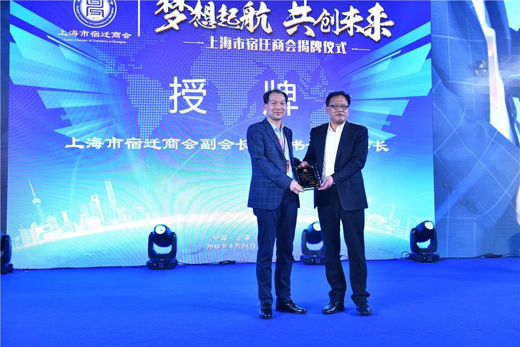 ▲宿遷市政府副市長(zhǎng)曹秀明為上海市宿遷商會(huì)副會(huì)長(zhǎng)陳長(zhǎng)華授牌