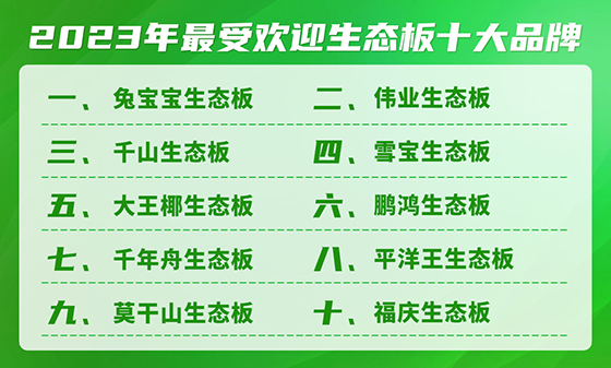 生態(tài)板作為一種新型材料未來(lái)市場(chǎng)份額將占85%左右,將成為建筑模板的主導(dǎo)產(chǎn)品,市場(chǎng)前景廣闊,催生了我國(guó)眾多生態(tài)板品牌的崛起與發(fā)展,目前建材市場(chǎng)的生態(tài)板品琳瑯滿(mǎn)目,哪些品牌最受市場(chǎng)歡迎?2023年3月10日,買(mǎi)購(gòu)網(wǎng)主辦了“2023年最受歡迎生態(tài)板十大品牌”評(píng)選活動(dòng),針對(duì)目前國(guó)內(nèi)市場(chǎng)上主要的生態(tài)板品牌,深入各地建材市場(chǎng)進(jìn)行生態(tài)板年度銷(xiāo)售量調(diào)查。經(jīng)過(guò)了2個(gè)月的調(diào)查分析與嚴(yán)格統(tǒng)計(jì),以下10個(gè)品牌憑借著領(lǐng)先的銷(xiāo)售量,入選十大品牌榜單: