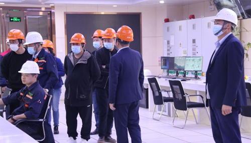 在李濤總、耿亮總的陪同下,彭總一行先后參觀了產業園展示中心、無醛板生產車間和飾面生產線。參觀過程中,耿亮總向客人們詳細介紹了產業園投資建設情況、無醛板生產情況和產品質量情況。