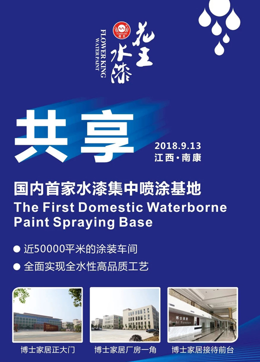 最新消息,9月13日,國內民族涂料企業引領者花王水漆將在江西南康隆重舉辦“花王水漆,共享水漆涂裝踐行者”——博士家居開業盛典。博士家居是巴德士投資的全資子公司,擁有近50000平米的涂裝車間,以及全面實現全水性高品質工藝。