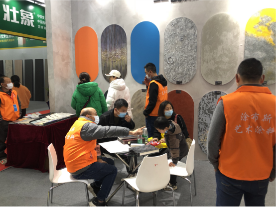 現場氣氛活躍,人流如織。作為高端藝術涂料的代表性品牌,涂布斯以豐富的產品質感紋理、多樣的疊色效果、細膩的墻面質感、成熟的服務配套、精準的招商扶持,增強了意向經銷商的合作信心。