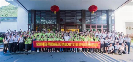 培訓會最后由蒙娜麗莎集團營銷副總裁鄧啟棠做總結發言,鄧總指出,在新的形勢與互聯網時代的大背景下,伴隨著80、90后新的消費群體對審美與裝修的個性需求,我們只有不斷創新,深入研究陶瓷薄板在各種應用領域更廣泛的需求,才能真正發揮陶瓷薄板更大市場空間,并針對標桿經銷商如何對市場深耕細作與市場運營進行相應的剖析,給全體學員就如何自我調整思路與克服外部環境相結合得到例證,鄧總同時指出蒙娜麗莎陶瓷薄板經過十年的研發推廣與不斷創新,迎來了行業集中式的大爆發,可謂是薄板與大板處在行業的風口,就如何在風口之際依托蒙娜麗莎在行業中的領先地位開拓更大的藍色市場,唯有堅定堅持技術營銷才是蒙娜麗莎陶瓷薄板的重中之重,會后鄧總與全體參會學員合影留念。