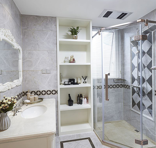 衛浴間用巴黎世家阿瑪尼(SY8073S)丁香灰打造穩重素雅灰中帶紫的色調,紋理通透自然,整體視覺感輕松柔和,給人以放松愜意的感受。
