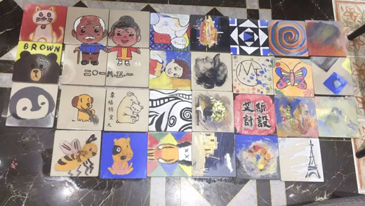活動現場,大朋友小朋友們,都在威尼斯商人瓷磚上畫自己的作品。