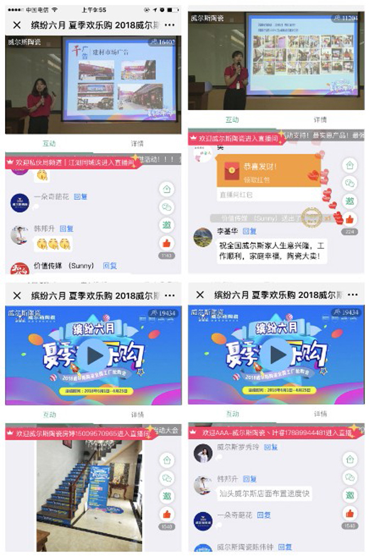 本次啟動大會加入現場直播,全國威爾斯陶瓷門店均可同步觀看。無論你是身在全國各地,只需點擊直播鏈接,即可進行互動、留言、搶紅包等多種交互方式,讓本次活動持續火爆。截止啟動大會勝利召開,直播間累計參與人數過萬!