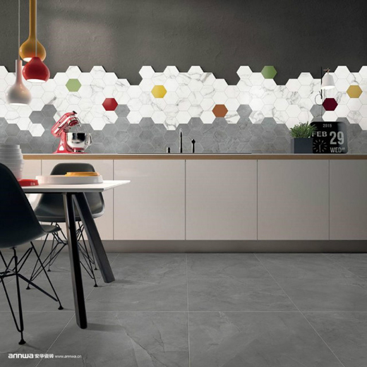 安華MIES密斯現代磚作為室內裝飾主材,以其充滿現代氣息和美學感的紋理及奢華典雅的氣質,讓人為之傾倒。每一塊大理石瓷磚紋理都是不同的,紋理清晰細膩,色彩純正飽和,帶給大家一次又一次的視覺盛宴。