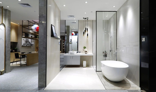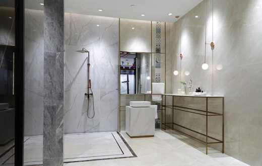 900mmX1800mm大規格瓷磚是近年流行的瓷磚產品,其特點靈活多變、設計多樣,滿足大空間應用,深受到業主的喜愛。威爾斯總部展廳2樓升級,大膽運用900mmX1800mm系列大規格瓷磚上墻鋪貼、地面鋪貼,讓整個樣板間空間更具高端大氣。