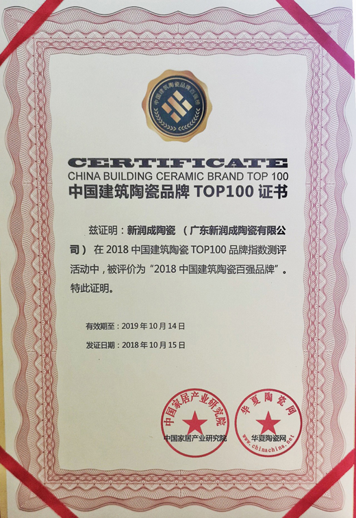 10月15日,華夏陶瓷網聯合中國室內裝飾協會裝飾材料用品專業委員會在廣州白天鵝賓館舉行了“致敬改革開放40年•中國建筑陶瓷‘40年40品牌’系列評選活動”,新潤成陶瓷榮耀入選“2018中國建筑陶瓷TOP100”!