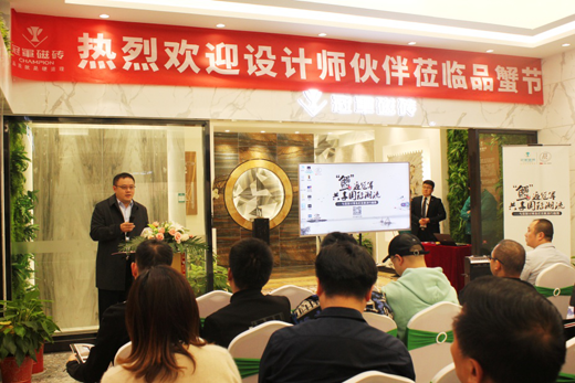 本次冠軍磁磚品蟹節,由冠軍建材集團執行副總、行銷處總經理林祐宇致歡迎詞拉開序幕,對到訪的伙伴們,表示衷心的歡迎,并感謝大家對冠軍磁磚的大力支持。后由冠軍建材集團研發中心總監楊奎彬,分享意大利博洛尼亞展最新的國際流行趨勢:材質題材的跨界混搭漸成風尚,從產品開發端就融入應用設計思路目前瓷磚主題題材以石材、混凝土、木紋為主要范疇,今年展會上有更多金屬材質元素的融入,并且與石材、木紋、混凝土等一起混搭出現。在色彩上:主流的黑白灰純色弱化,暖灰素色產品成為今年色彩流行主調;展會產品的色彩感表現的更溫暖、更豐富如藍灰、杏灰、鐵銹棕灰都成為瓷磚時尚流行色,最新的國際流行趨勢也深受伙伴們的高度關注。隨后大家參觀了冠軍磁磚的展廳,到場的伙伴們給予了新品的肯定和積極的反饋建議,也表示希望冠軍新品能早日應用于自己的設計作品上。
