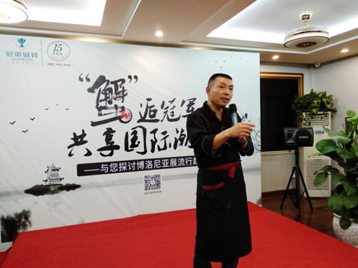 秋風起,蟹腳癢;菊花開,聞蟹來。恰逢金秋時節,意大利博洛尼亞展結束,又是一年品蟹好時節,冠軍磁磚舉辦【“蟹”逅冠軍,共享國際潮流】活動,邀約眾多設計界精英以及代理商合作伙伴們與冠軍一起分享意大利的國際趨勢,共品蟹肥膏美的當令美味,共享美學盛宴,并于2018年11月6日在美麗的陽澄湖畔巴城蟹舫圓滿落幕。