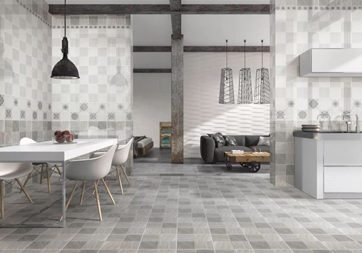 DP1-F30941以淺灰色為主色調,簡單與花俏融合得很自然,讓人仿佛處在一個靜中帶鬧的環境中,適用于餐廳和衛浴等空間。