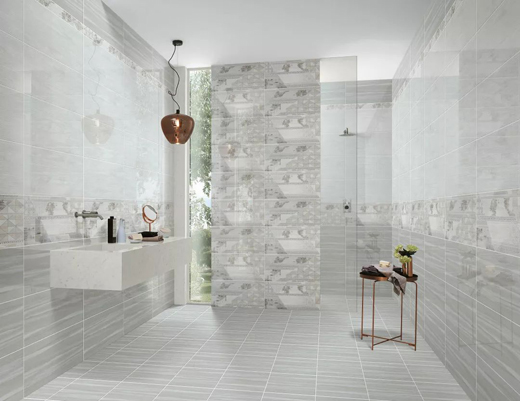 DP1-F60592以灰色為主色調,這系列的瓷磚花式更加多樣,以合理的面積鋪貼對應的瓷片,讓整個衛浴更加充滿生機與活力。