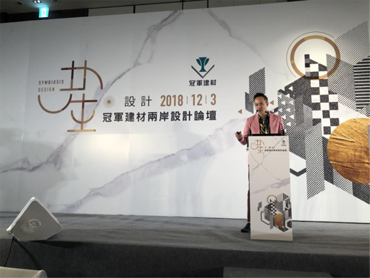 以“共生·設計”為主題,2018冠軍建材兩岸設計論壇活動是在此次寶島寫下的最濃墨重彩的篇章。本次論壇邀請了劉榮祿和周天民設計大師,他們將「共享自然文化」的概念延伸至「共生·設計」,讓美感與機能相互依存,為空間注入文化與藝術的活力,賦予空間充滿動能的靈魂!