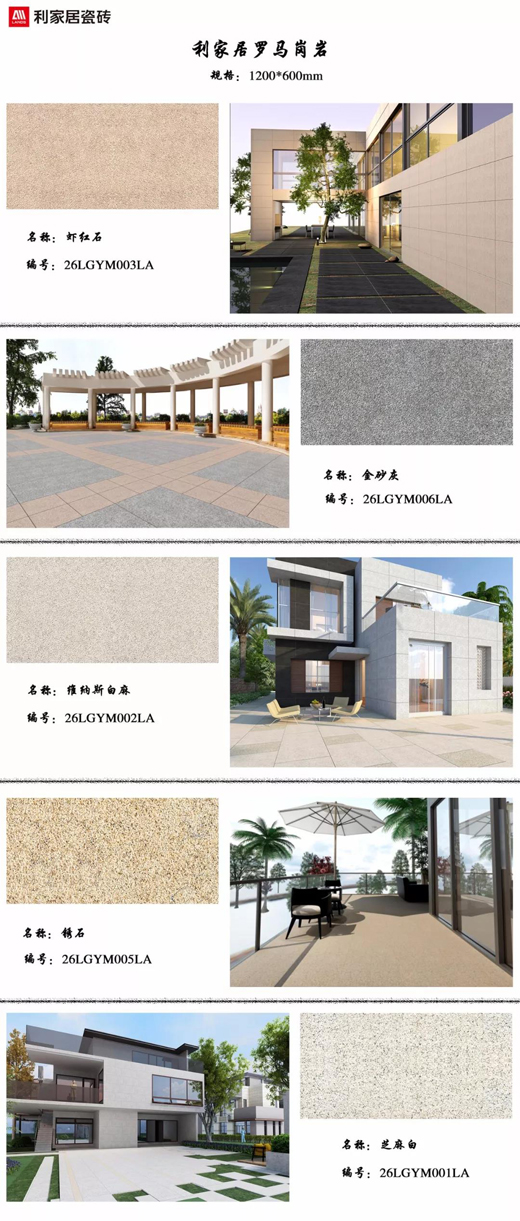 利家居瓷磚一直致力于研究符合當(dāng)下消費(fèi)需求的環(huán)保、健康家裝新型材料,針對(duì)花崗巖這些不可避免的缺陷,創(chuàng)新研究出新品類瓷磚產(chǎn)品——羅馬崗巖來(lái)替代花崗巖。