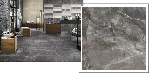 灰色,低調內斂,具有大師格調的色彩,高貴優雅、神秘而深邃,雅致的灰色為底色,搭配靈動的白色紋理,細膩豐富的肌理層次,讓人驚嘆瓷磚藝術的精湛。