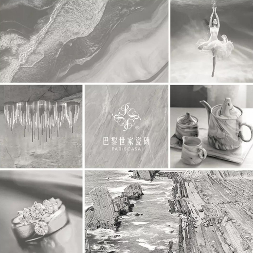 灰色火焰質感豐盈,沉穩的灰調與不羈的紋理結合,帶來通透、流暢的視覺感受,讓人置身空間不自覺地舒緩下來,自然與和諧的氛圍令人拋卻一切煩惱,其紋理自然,仿佛是激起蕩漾的波光,帶來一場與浪漫海岸的美妙初遇。
