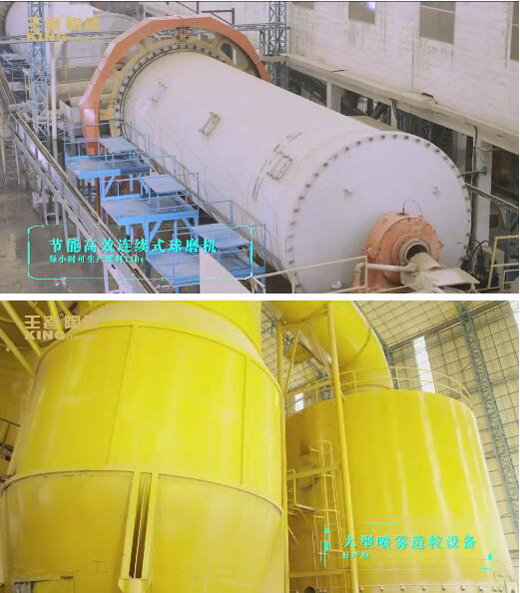 在球磨上,使用連續式球磨機,采用PLC控制,基本實現無人操作和集中控制;在噴霧上,使用新型10000型噴霧塔,產量達到了每小時70噸,且能耗低;在燒成上,建成了二組280*3.4m的寬體窯,能有效控制窯爐氣溫,降低排煙空氣系數,提高窯爐燃燒控制水平,溫度可降低50℃~80℃,燒成時間延長3分鐘,一年可節約消耗3228.6噸標準煤。