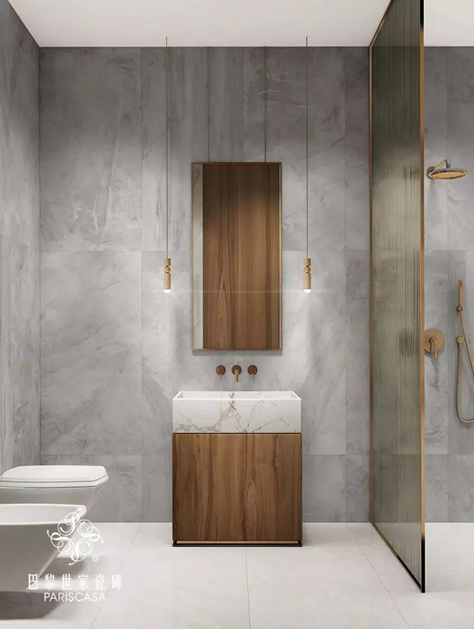 疏密有致的木紋舒展而流暢地鐫刻在柔光瓷磚上,有著細(xì)膩柔和的質(zhì)感。橫截的木紋逼真,線性的紋理之間交錯(cuò)而不亂,自由不受拘束,蘊(yùn)含著隨性自在的情感游走其中。