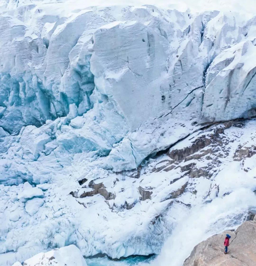 是世界上已知的最大的山谷冰川,是南極洲大地壘山地中的外流冰川,以冰瀑布形式,從南極高原下降約2200公尺至羅斯冰棚,將橫貫南極洲的山地分隔成,毛德皇后山和亞歷山德拉皇后嶺,給人雄偉壯觀之感,同時似乎有著緩緩的流動之感,奇妙至極,令人不得不驚嘆!