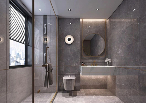 衛(wèi)浴=淺灰大理石+黑色幾何元素