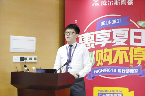 威爾斯市場部總監韓邦升在會上做致辭,他表示:威爾斯陶瓷在品牌總經理李總的帶領下,主動出擊、精準革新,傳統營銷模式強化升級與全網營銷新模式賦能發展同步推進,積極探索新的市場模式和渠道。本次“惠享夏日,HIGH購不停”618全國聯動活動,是天貓旗艦店建店以來的第一次線上線下結合的大型活動,整合了吸引消費者參與直播活動和促成成交的多重資源。線上引流、線下成交,促成終端各地銷量的增加;在6月銷售旺季突圍市場,真正讓利消費者。