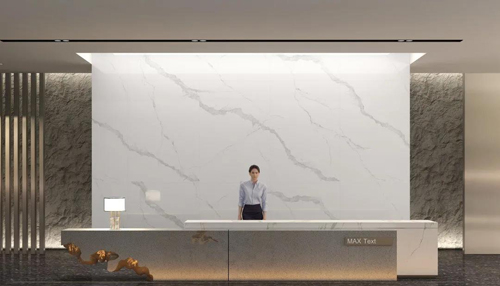 一面白色連紋巖板背景墻在這大堂空間里成為吸晴點,打破整體空間的沉悶性,富有律動的灰色紋理,透露出布拉諾自由而浪漫的風情,優雅簡潔明了。