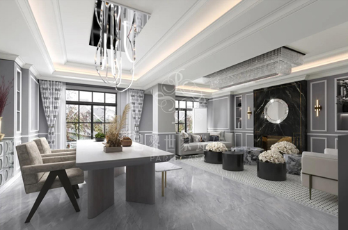 本案例通過巴黎世家柔光瓷磚產(chǎn)品進(jìn)行黑、白、灰搭配,打造層次感,簡約的高級感中略帶一絲神秘氣息,配上調(diào)性十足的歐式元素,不僅在空間色彩與精致的配件上形成呼應(yīng),同時增加了活躍感,舉手投足間塑造出內(nèi)斂不失優(yōu)雅的空間。