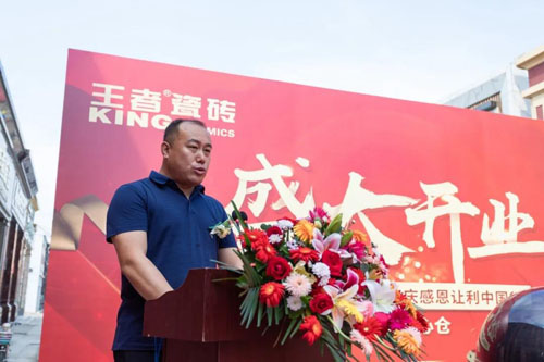 作為本次活動的東道主,王者瓷磚青島中心運營服務倉總經理簡金生對參與此次開業盛典的所有嘉賓朋友表示熱烈的歡迎以及誠摯的感謝。“王者瓷磚青島中心運營服務倉的建立,旨在輻射幫扶周邊城市及銷區經銷商,助力王者家人業績增長、錦上添花。而青島王者旗艦店的重裝開業,將為青島消費者提供一個一站式服務平臺,購磚省時省心更省力。”