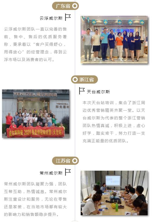 在廣東云浮站培訓中,威爾斯學院首席培訓官朱小玉老師重在產品知識的疏導,產品介紹差異化技巧及話術打造;在浙江天臺站的培訓中,朱老師在威爾斯全系產品知識核心賣點的講解中,巧妙融入產品展示優勢;在江蘇常州站的培訓中,朱老師又側重于銷售技巧的提升,核心銷售工具使用細節及話術打造。
