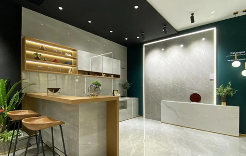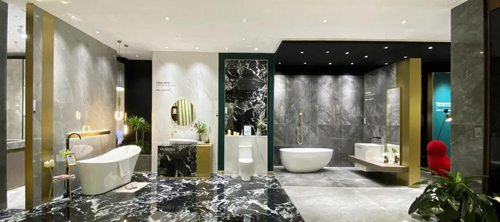 追求現代美學建構的品牌文化展廳,威爾斯設計總監陳勝傳帶領其團隊歷經數月,用時尚、低奢的設計語言,再次闡釋了生活儀式感;新裝部分選用具有高端品質的布拉諾系進行主打演繹,以其1500X750MM的黃金規格與極具趨勢代表性的珍稀石材為載體,創造出了精奢、具有生活品味的藝術模范空間,彰顯出威爾斯對產品應用的細節與空間質感的高度追求。
