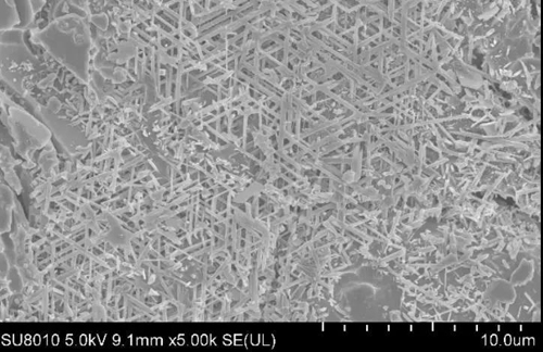 產品坯體內部網格狀莫來石針狀晶體