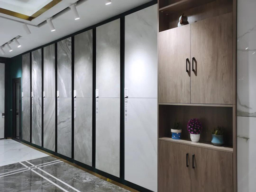 600x1200mm規格產品同樣是人氣之選。再往里走,大家心儀的紋理款式都被逐一展現。此時,可選擇落座而談,稍作休息,邊品茶,邊慢想家的空間。