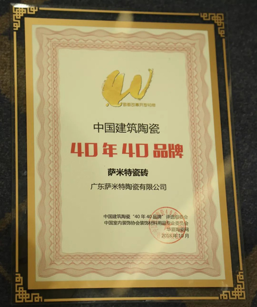薩米特瓷磚,作為乘著改革開放東風崛起的時代弄潮兒,在此次盛會獲得了“中國建筑陶瓷40年40品牌”美譽。