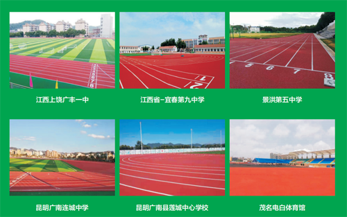 ·混合型塑膠跑道,不透水,造價適中,基本能滿足學校運動需求。