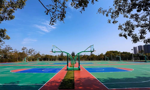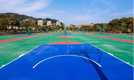 此前,學校大部分籃球場的地板為懸浮式拼裝地板,有學生反映在這種拼裝地板打球很不習慣,于是,學校將中區4個籃球場改造成4個塑膠籃球場。這個寒假,學校對13個籃球場和12個排球場進行了改造。此次改造的塑膠球場采用硅PU材料,施工后的場地抗磨損能力強,將給學生帶來更加舒適的運動體驗。