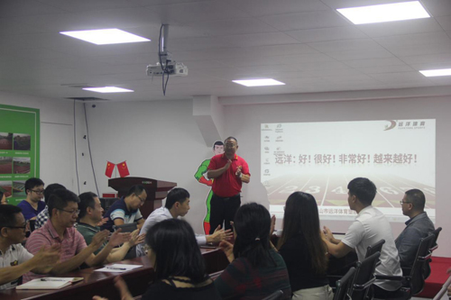 遠洋體育運營總監兼信息化管理項目經理劉峰波主持本次會議,在首先的問好互動環節中——“好,很好,非常好,遠洋越來越好!”得到了參會人員的積極回應,聲音表達了內心的激情澎湃,營造出良好的與會氛圍。