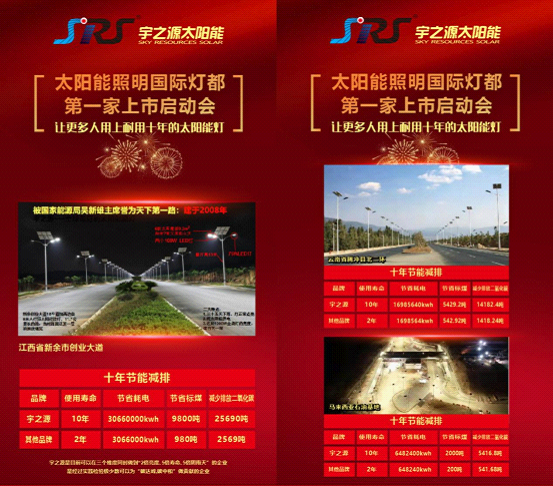 宇之源以無可比擬的產品性能優勢,成為了行業中唯一一家可以做到2倍亮度、5倍壽命、5倍陰雨天的太陽能路燈品牌。