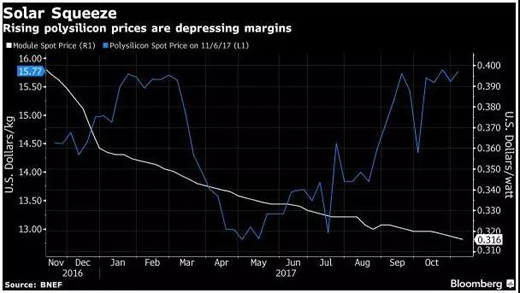 Driscoll認為,國際貿易糾紛使得中國制造商難以在其他地方尋找更廉價的多晶硅。四年前,中國對從美國和韓國進口的優質多晶硅征收高額關稅,基本上迫使企業在當地進行采購。