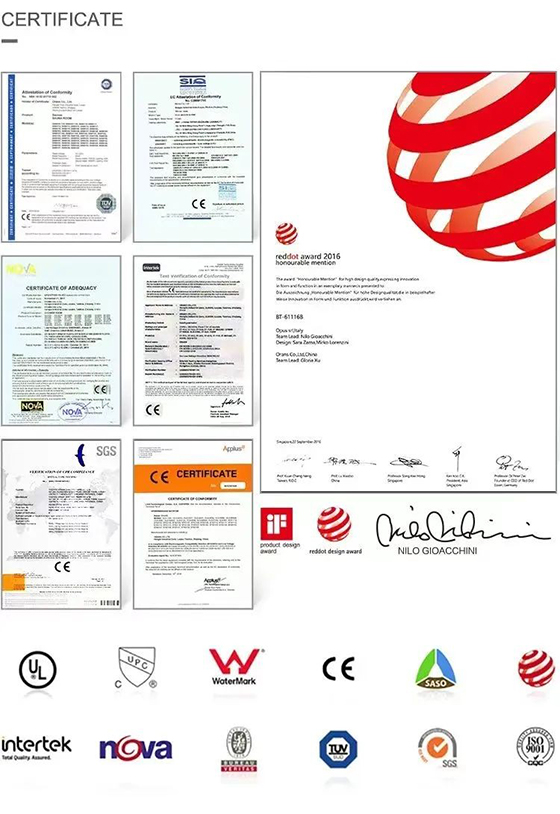 歐路莎衛浴全面通過IS09001:2015質量管理體系、ISO14001:2015環境管理體系、ISO 45001:2018職業健康安全等體系的認證。