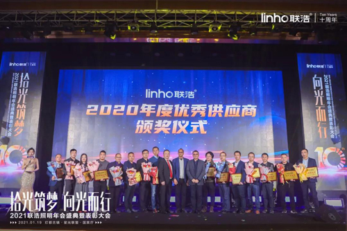 同時,由聯浩照明創始人張宏為2020年度聯浩照明戰略合作供應商頒獎。