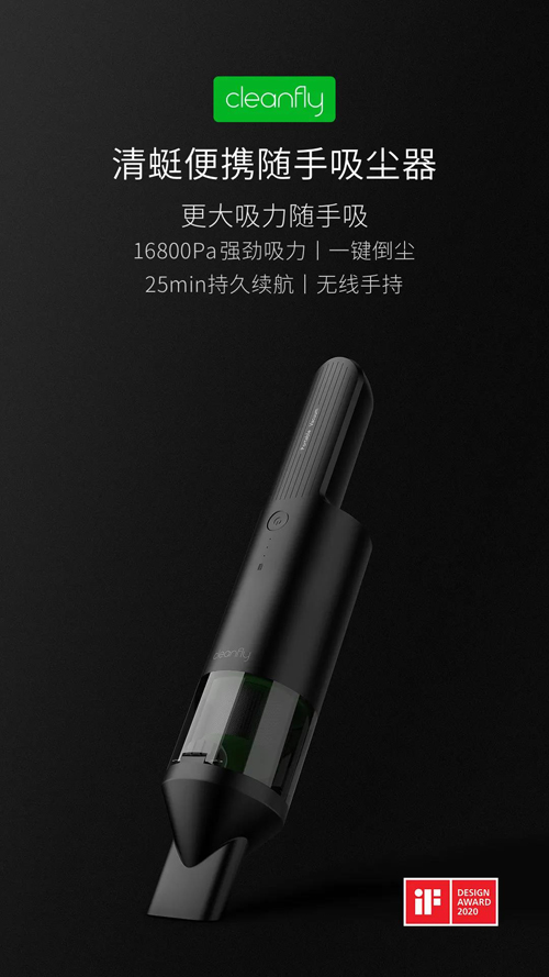 近日全新一代的清蜓便攜隨手吸塵器帶著更大的光環(huán)登陸小米有品,多項(xiàng)產(chǎn)品性能大幅提升。在工業(yè)設(shè)計(jì)上,設(shè)計(jì)團(tuán)隊(duì)依舊延續(xù)了極致簡約的風(fēng)格,并榮獲了2020年的德國iF設(shè)計(jì)大獎(jiǎng)。