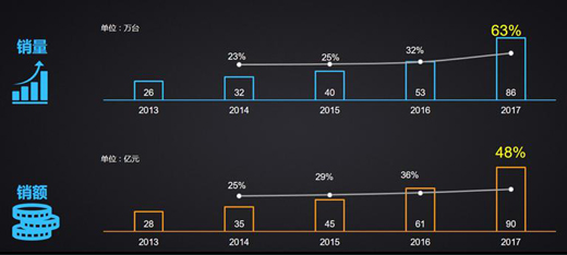 奧維云網統計預測數據:2017年中國新風行業銷售額將達到90億,同比增長48%;銷量達到86萬臺,同比增長63%。種種數據讓大家對新風市場充滿了期待。2017年前三季度暴漲的銷售數據和市場反響,也驗證了新風行業“朝陽行業、前途無限光明”,很多人在“旺季”來臨之前,做足了準備,正所謂萬事俱備,只欠霧霾。