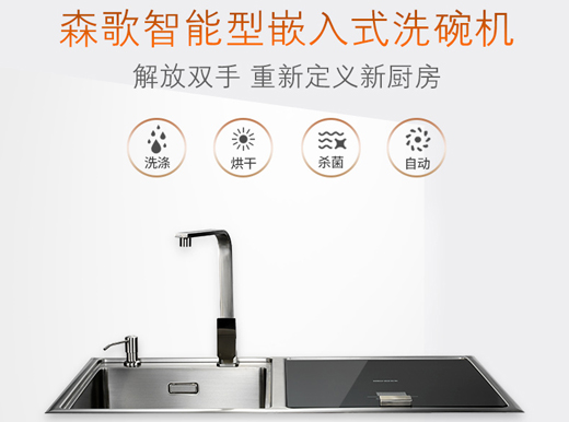 和傳統的洗碗機相比,水槽式洗碗機才是真正節省空間的洗碗機。以著名洗碗機品牌森歌水槽洗碗機為例,采用了水槽、洗碗機一體的設計,進出水口和原來的水槽是一致的,不需要改水,只需要替換掉廚房原有水槽,就可以實現水槽、洗碗等多樣化的功能,不會額外占據空間,而且安裝也非常方便。