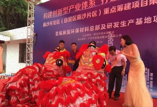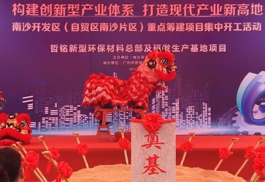 哲銘集團董事長胡少文在奠基儀式上表示,新型環保材料總部及研發生產基地項目旨在全力推行綠色制造。項目將充分發揮研發技術優勢,并全面整合南沙區東涌鎮區位、政策、人才、產業基礎等資源,具有良好的經濟效益和社會效益,可推動企業實現戰略目標,進一步支撐完善南沙區高端裝備制造產業鏈的發展并打破外資企業對國內新型環保材料市場的壟斷,振興民族工業。