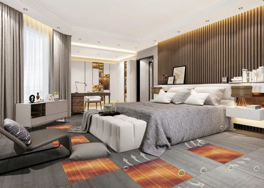 △臥室中鋪貼芬芳石墨烯電暖+芬芳負離子瓷磚,暖而不燥,皮膚得到深層修復和滋潤,一覺醒來,身心都美美的!