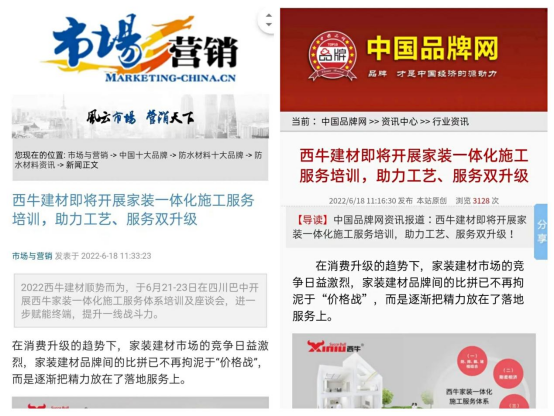 西牛建材憑借“品質(zhì)為根,服務(wù)為本”的市場(chǎng)理念,獲得國內(nèi)消費(fèi)者的廣泛認(rèn)可,客戶產(chǎn)品使用熱度持續(xù)高企,引起《新浪網(wǎng)家居》、《今日頭條》、《中國品牌網(wǎng)》、《市場(chǎng)與營銷》、《中國涂料品牌網(wǎng)》、《九正建材網(wǎng)》、《中國家居資訊網(wǎng)》、《168項(xiàng)目招商網(wǎng)》、《中華網(wǎng)》、《中國建材家居網(wǎng)》等十多家媒體的爭(zhēng)先報(bào)道。