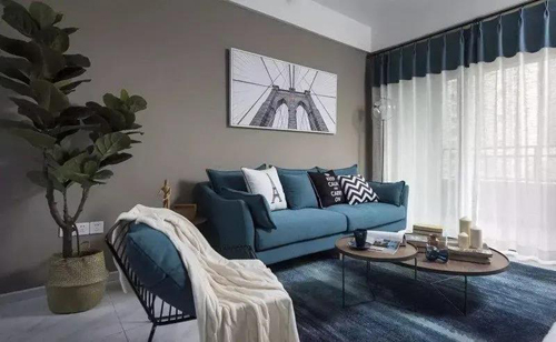 目前大行其道的簡約風(fēng)、極簡調(diào)性,灰墻已成為其中極具代表性的墻面用色,無論是深灰還是淺灰,都有著簡約而不失內(nèi)斂的優(yōu)雅。藝術(shù)涂料則在柔和的灰色之上,注入了更悅目的視覺層次,搭配藍(lán)色(藍(lán)色系)的沙發(fā),往往能成為優(yōu)雅空間里的一抹明麗的亮色。