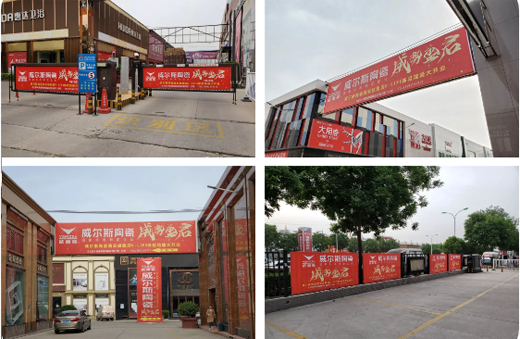 在西安城區(qū)各主干道上,隨處可見威爾斯品牌標(biāo)識廣告,醒目大氣的威爾斯品牌形象全面覆蓋。主干道高炮廣告,建材市場門口立柱廣告,公交車站臺廣告等,各類宣傳途徑應(yīng)有盡有。張虎山魄力十足,眼光獨到,強(qiáng)化品牌意識,力求打造西安陶瓷第一品牌,讓西安人民在選購瓷磚的第一時間想到威爾斯。