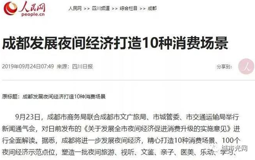 成都:9月23日,成都市商務局聯合成都市文廣旅局、市城管委、市交通運輸局舉行新聞通氣會,對日前發布的《關于發展全市夜間經濟促進消費升級的實施意見》進行全面解讀。據悉,成都將進一步發展夜間經濟,精心打造10種消費場景、100個夜間經濟示范點位,塑造一批夜間旅游、視聽、文鑒、親子、醫美、樂動、學習、購物、餐飲和風情街區消費場景。當天,成都同步啟動了2019“金秋耍成都·夜間新體驗”系列活動。
