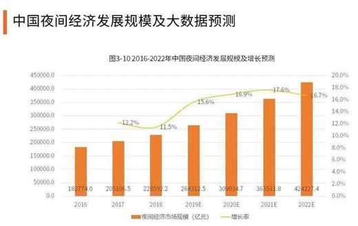 隨著中國各地政府對夜間經濟扶持力度加大、夜間消費場所的服務市場增加等,中國的夜間經濟發展規模將呈現爆發式增長,將在2020年突破30萬億元。